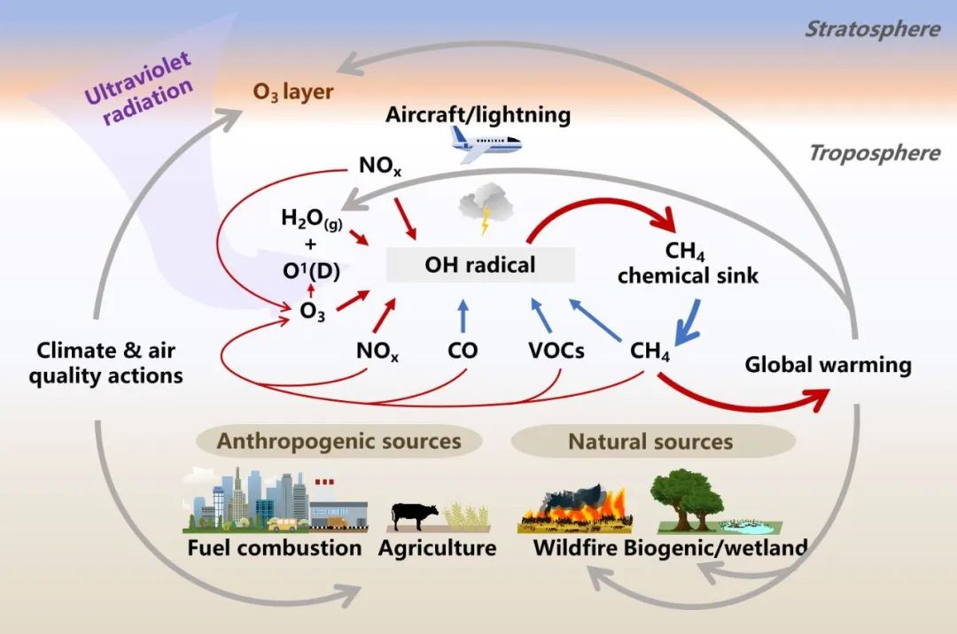 全球空气污染与OH自由基、甲烷源汇收支之间的复杂相互作用